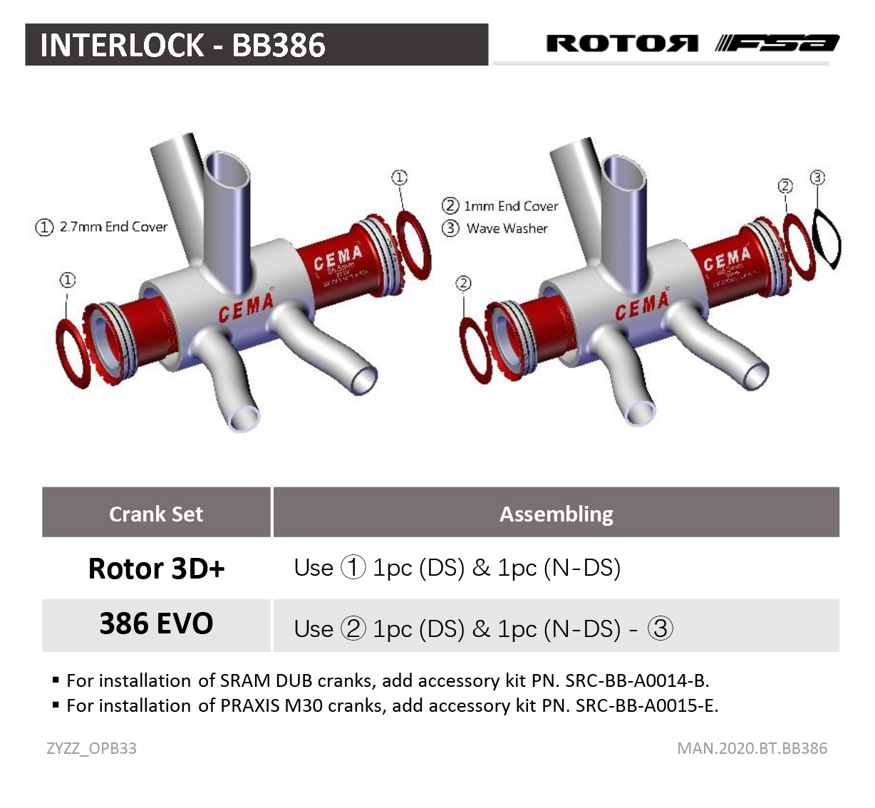 With this BB386 Interlock bottom bracket you can install a FSA386/Rotor/Raceface 30mm or any other 386 type crankset in a BB386 frame. The perfect bearing alignment ensures a creak free bottom bracket solution.