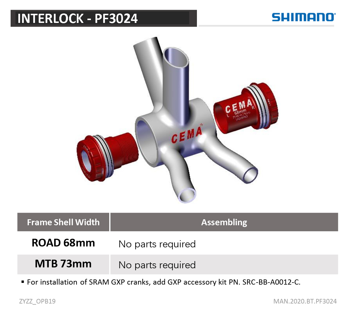 With this PF30 Interlock bottom bracket you can install a Shimano or any other 24 mm crankset in a PF30 frame. The perfect bearing alignment ensures a creak free bottom bracket solution.