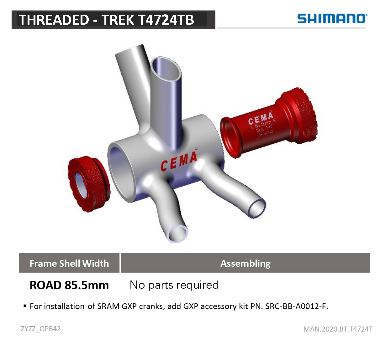 Avec ce boîtier de pédalier T47 TREK vous pouvez installer un pédalier Shimano ou n'importe quel pédalier de 24 mm dans un cadre T47 TREK.