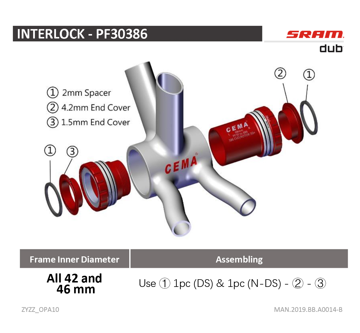 Met dit PF30 Interlock bottom bracket kan je een SRAM DUB crankset installeren in een PF30 frame.De perfecte uitlijning van de lagers zorgt voor een gegarandeerd kraakvrij bottom bracket.