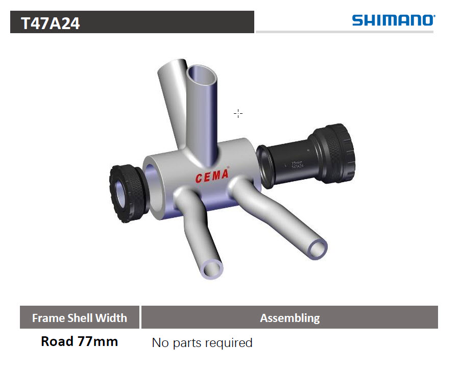 Met dit T47A bottom bracket kan je een Shimano of eender welke 24 mm crankset installeren in een T47A frame.