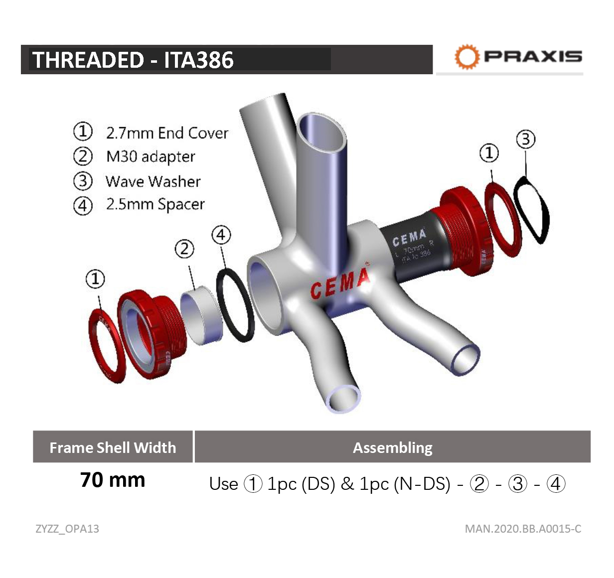 With this ITA bottom bracket you can install a PRAXIS M30 crankset in a ITA frame.