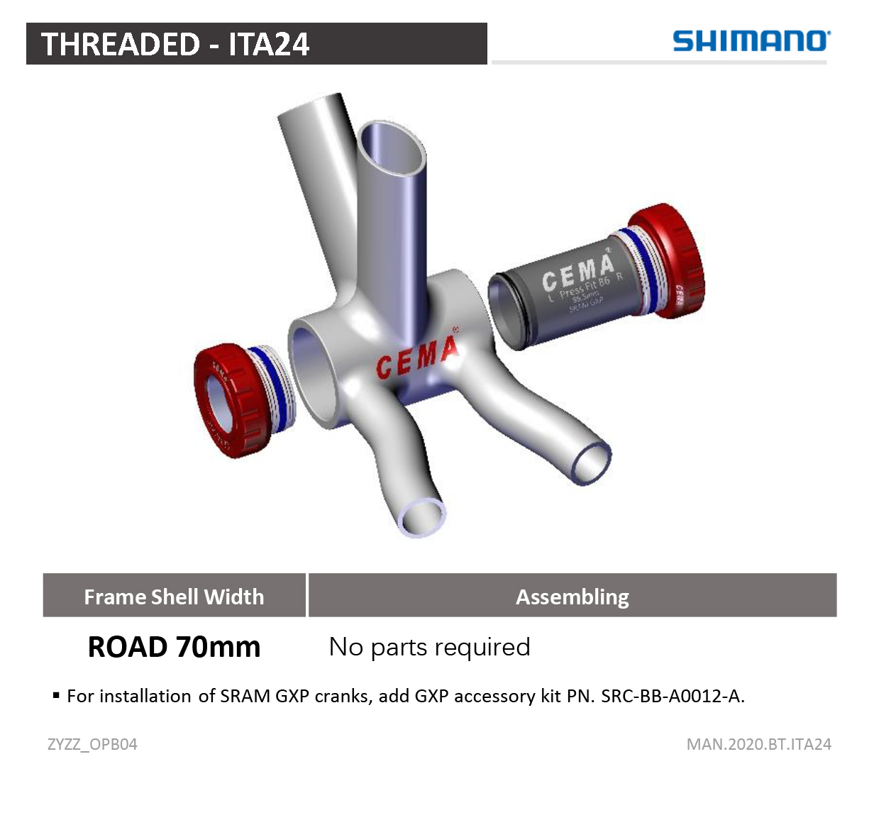 Avec ce boîtier de pédalier ITA vous pouvez installer un pédalier Shimano ou n'importe quel pédalier de 24 mm dans un cadre ITA.
