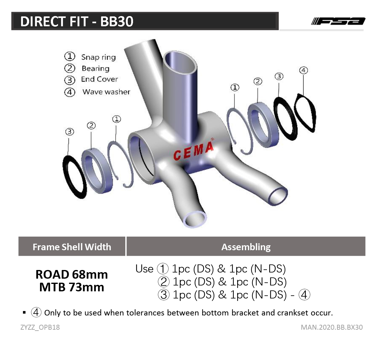 Met dit BB30 bottom bracket kan je een BB30/PF30 crankset installeren in een BB30 frame.De perfecte uitlijning van de lagers zorgt voor een gegarandeerd kraakvrij bottom bracket.