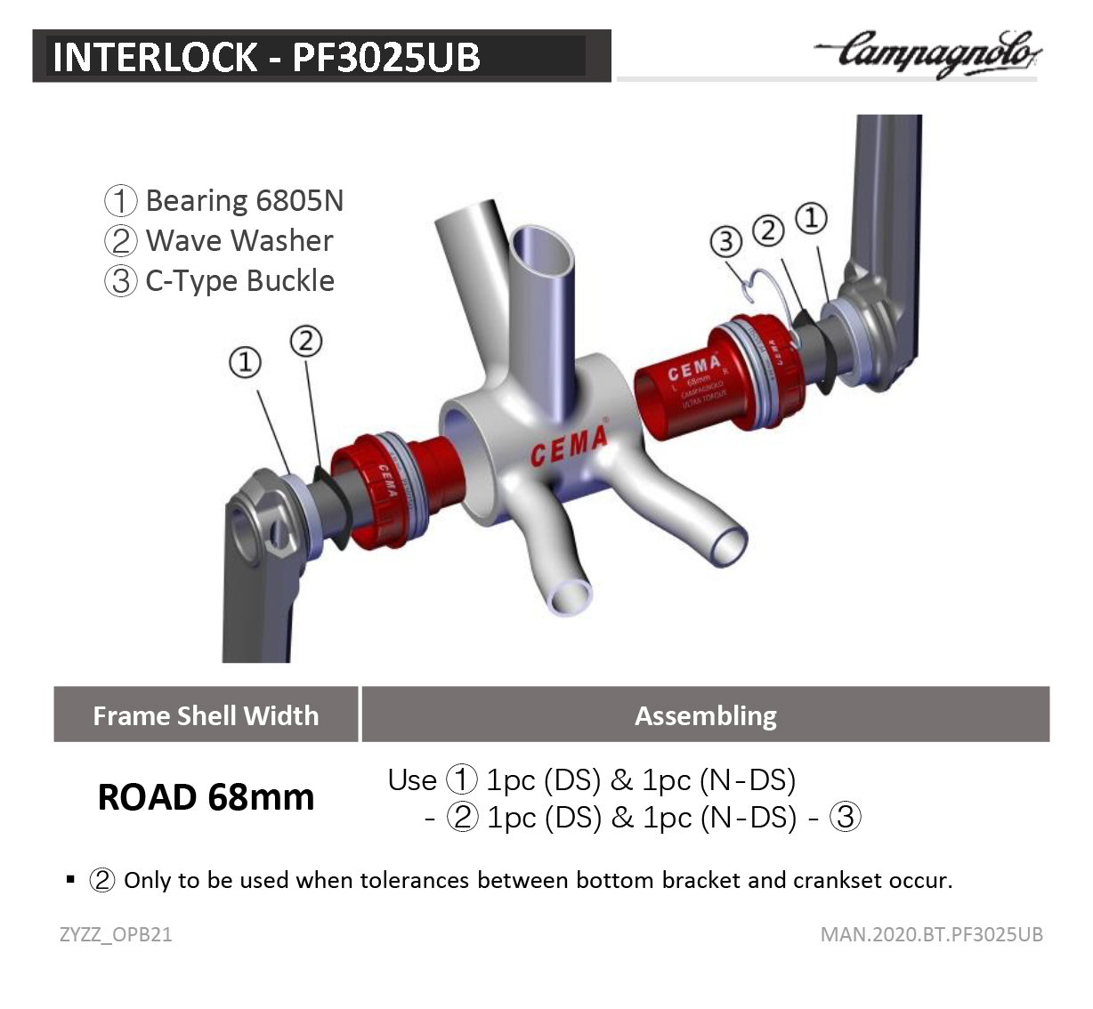 Met dit PF30 Interlock bottom bracket kan je een Campagnolo Ultra Torque crankset installeren in een PF30 frame.De perfecte uitlijning van de lagers zorgt voor een gegarandeerd kraakvrij bottom bracket.